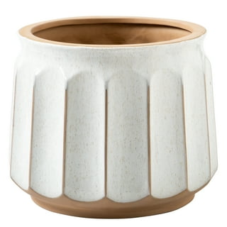 Amazon Com Elly Decor 14 Inch Plastic Cylinder Planter Pot With Self Watering Saucer And Drainage Hole Lightweight Extremely Durable 14 X 14 White Patio Lawn Garden